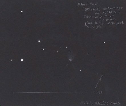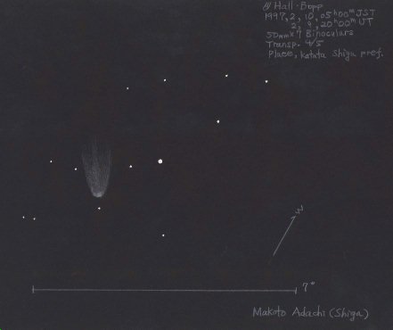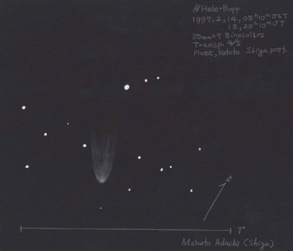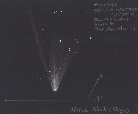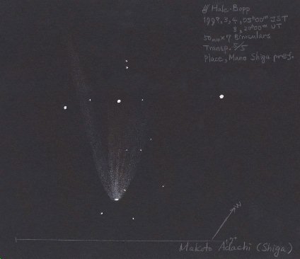 双眼鏡によるヘールボップ彗星