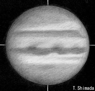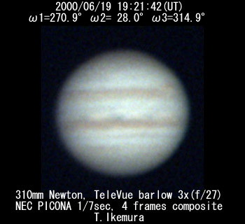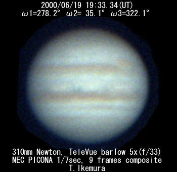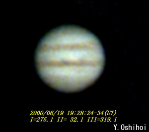 No.1 2000/06/19 18h55m(UT) I=253.8 II= 11.0 150mm Maksutov-Newton, x200 Seeing:2-3/10 Transp.:1/5