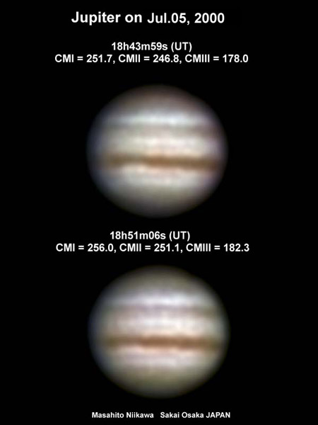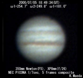 ![]() No. 5 2000/07/05 18:49:34(UT) I=254.7 II=249.8 III=181.0 | ![]() Enhanced by Y.Iga