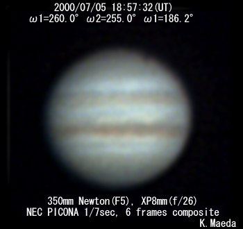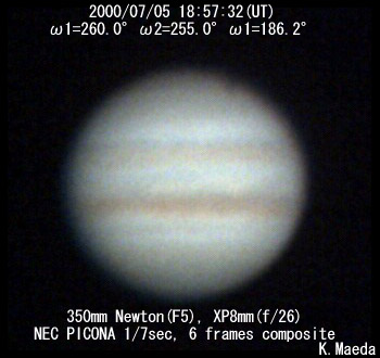 ![]() No. 6 2000/07/05 18:57:32(UT) I=260.0 II=255.0 III=186.2 | ![]() Enhanced by Y.Iga