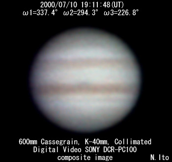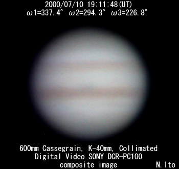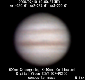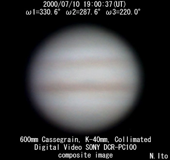 ![]() No. 5 2000/07/10 19:00:37(UT) I=330.6 II=287.6 III=220.0 | ![]() (Enhanced by Y.Iga)