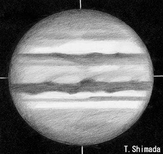 | No.9 2000/07/10 19h15m(UT)ω1=339.8 ω2=296.6シーイング=5/10 透明度=3/5 16cm反射 200倍