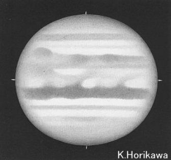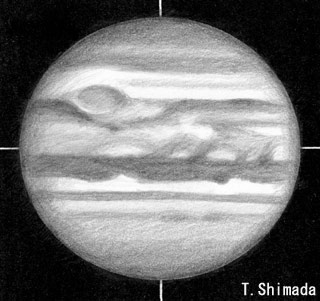 | No.10 2000/07/16 19h21m(UT)ω1=210.2 ω2=121.0シーイング=5/10 透明度=4/5 16cm反射 200倍