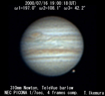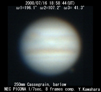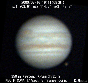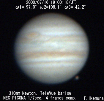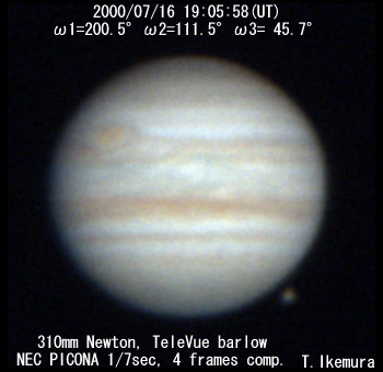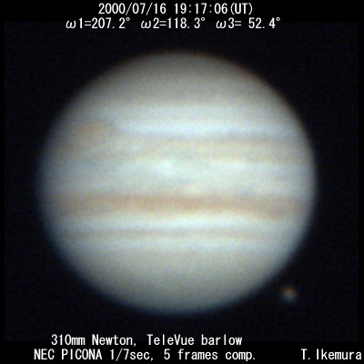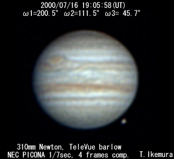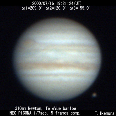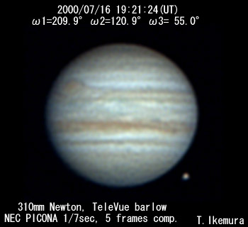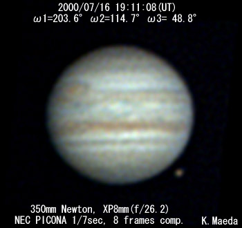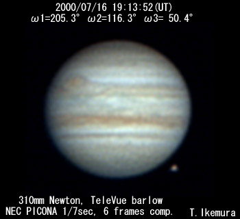![]() No. 16 2000/07/16 19:21:24(UT) I=209.9 II=120.9 III= 55.0 De=+3.3 E.Dia.=35.32" |