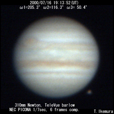 ![]() No. 14 2000/07/16 19:13:52(UT) I=205.3 II=116.3 III= 50.4 De=+3.3 E.Dia.=35.32" |