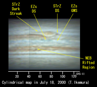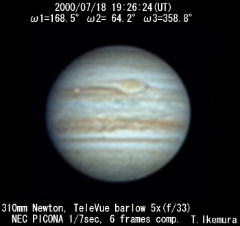 ![]() No. 6 2000/07/18 19:10:43(UT) I=158.9 II= 54.7 III=349.3 | ![]() (Enhanced by Y.Iga)
