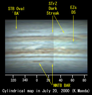 ![]() No. 9 2000/07/20 19:02:53(UT) I=109.7 II=350.3 III=285.4 | ![]() (Enhanced by Y.Iga)