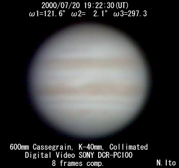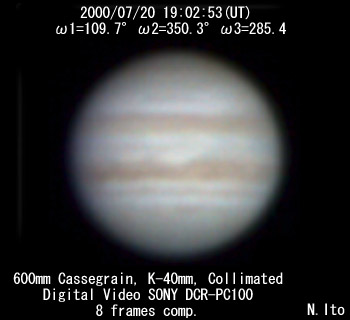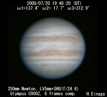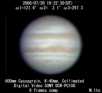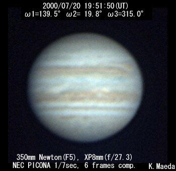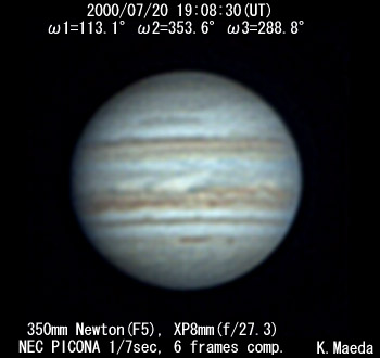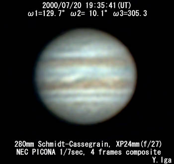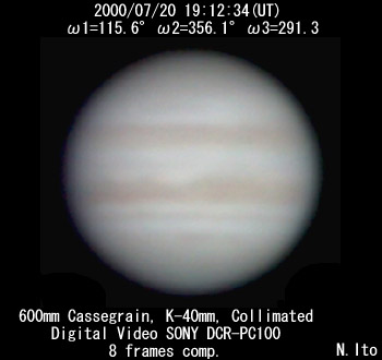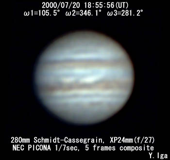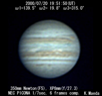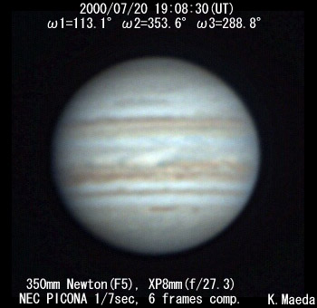 ![]() No.11 2000/07/20 19:22:30(UT) I=121.6 II= 2.1 III=297.3 | ![]() (Enhanced by Y.Iga)