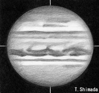 I=105.5 II=346.1 III=281.2 280mm Schmidt-Cassegrain, XP24mm(f/27) NEC Picona 1/7sec, 5 frames composite Seeing:4/10 Transp.:4/5