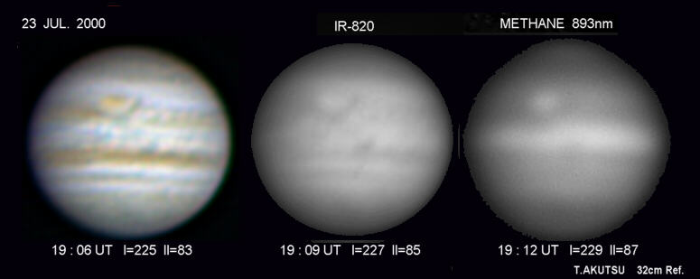 ![]() 19:06(UT) I=225 II= 83 (RGB ) 19:09(UT) I=227 II= 85 (IR=820nm ) 19:12(UT) I=229 II= 87 (Methane=893nm)