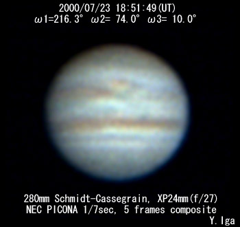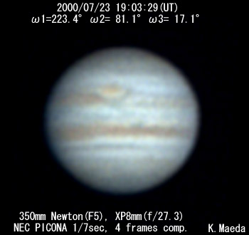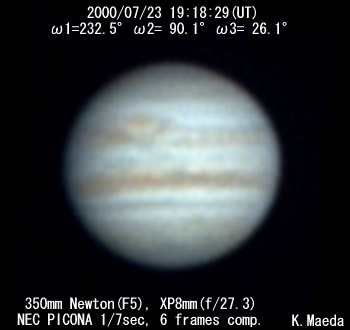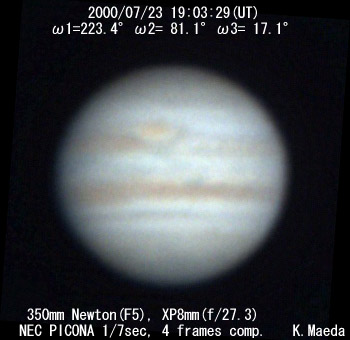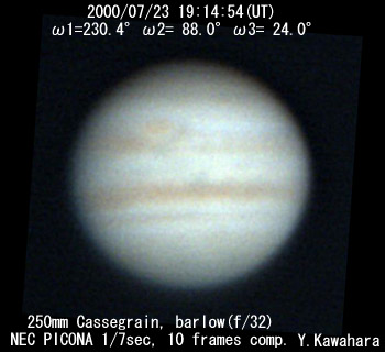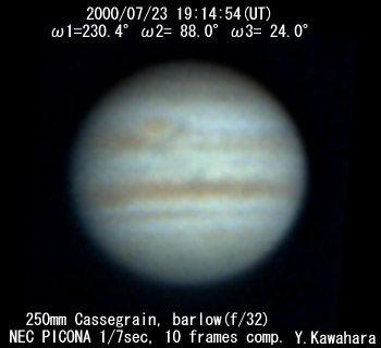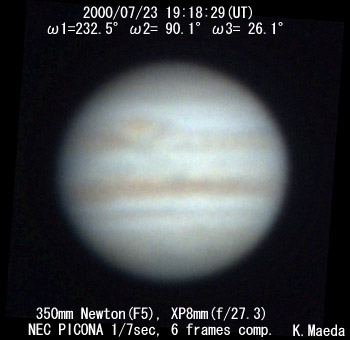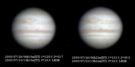 ![]() No. 6 2000/07/23 19h10m(UT) I=226.0 II= 83.7 III= 20.8 No. 7 2000/07/23 19h22m(UT) I=233.3 II= 90.9 III= 28.0