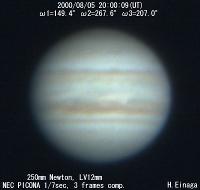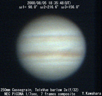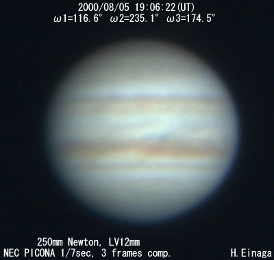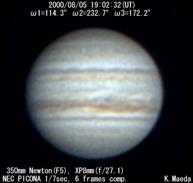![]() No. 33 2000/08/05 19:02:32(UT) I=114.3 II=232.7 III=172.2 |