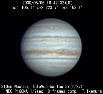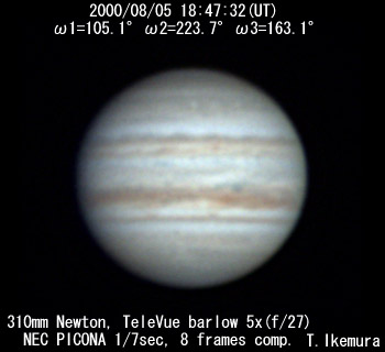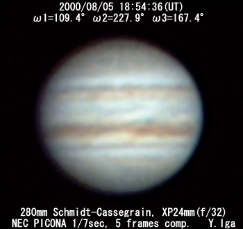 I=109.4 II=227.9 III=167.4 280mm Schmidt-Cassegrain, XP24mm(f/32) NEC Picona 1/7sec, 5 frames composite Seeing:6/10 Transp.:4/5