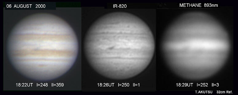 ![]() 18:22(UT) I=248 II=359 (RGB ) 18:26(UT) I=250 II= 1 (IR=820nm ) 18:29(UT) I=252 II= 3 (Methane=893nm)