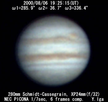 I=285.9 II= 36.7 III=336.4 280mm Schmidt-Cassegrain, XP24mm(f/32) NEC Picona 1/7sec, 6 frames composite Seeing:5/10 Transp.:3/5