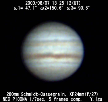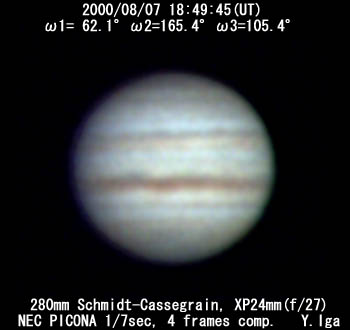I= 47.1 II=150.6 III= 90.5 280mm Schmidt-Cassegrain, XP24mm(f/27) NEC Picona 1/7sec, 5 frames composite Seeing:5/10 Transp.:2/5