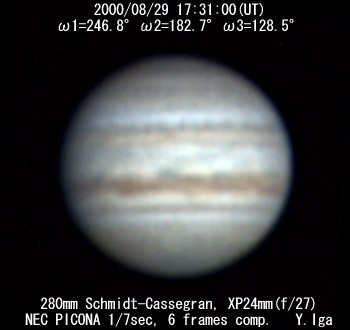 I=246.8 II=182.7 III=128.5 280mm Schmidt-Cassegrain, XP24mm(f/27) NEC Picona 1/7sec, 6 frames composite Seeing:7/10 Transp.:4/5