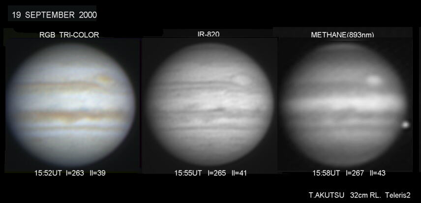 ![]() 15:52(UT) I=263 II= 39 (RGB ) 15:55(UT) I=265 II= 41 (IR=820nm ) 15:58(UT) I=267 II= 43 (Methane=893nm) | ||