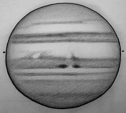 SEBsはω2=240°付近まで暗斑が連続していて、その後方は一定して濃い模様である。SEBnは大赤斑の後方のω2=120°付近から中央組織が濃くなっていて、この様相は330°付近まで続いている。注目すべきは、ω2=309°のSEBZにある経度方向に伸びる白斑である(浅田、堀川)。この白斑は5月26日の浅田のCCD画像(ω2=305°付近)、5月31日の伊賀のスケッチ(ω2=303°)にも捉えられている。
