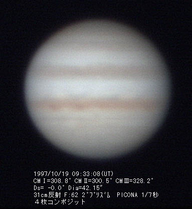 1997/10/19 11h47m(UT) I= 30.0 II= 21.0 シーイング=4-5 透明度=3 16cm反射 200x