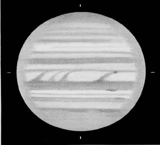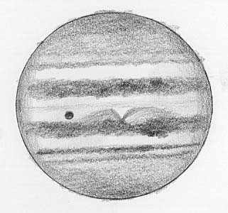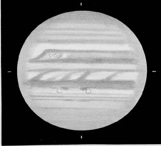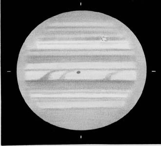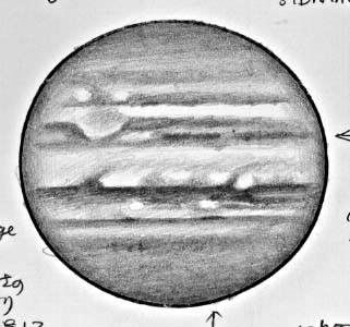 大赤斑はほんのり赤味を感じるが、輪郭はつかめない。
