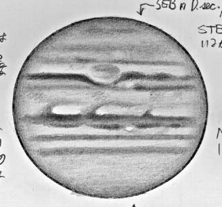 大赤斑はわずかに赤味を感じる。左下がやや見にくく南が濃い。