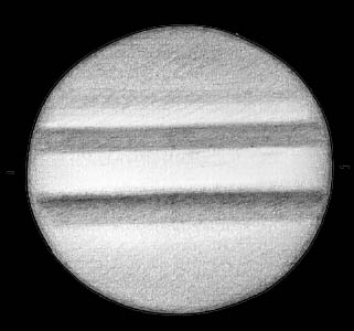 3月31日よりも木星の高度は高いが、シーイングが悪い。バックが明るく、コントラストも悪い中での観測。