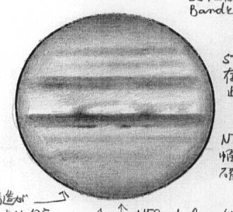 ![]() No.2 1998/04/19 19:55(UT) I=225.7 II=265.5 Seeing:3/10 Transp.:3/5 x260 |