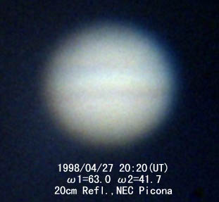 ![]() 1998/04/27 19:25(UT) I= 29.5 II= 8.4 |