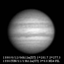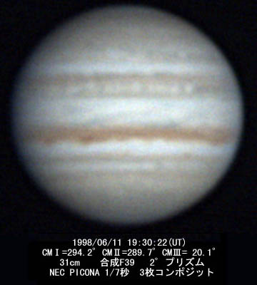 ![]() No.15 1998/06/11 18:50(UT) I=270.0 II=265.8 Seeing:8/10 Transp.:5/5 x311 |