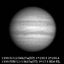 ![]() 1998/06/11 18:06(UT) I=241.9 II=237.9 Seeing:7/10 Transp.:8/10 |