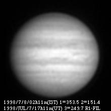 ![]() No.26 1998/07/07 16:34(UT) I=332.8 II=130.9 Seeing:1/10 Transp.:3/5 x360 |