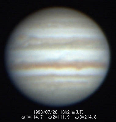 ![]() No.16 1998/07/28 14:14(UT) I=324.7 II=323.1 Seeing:5-6/10 Transp.:6-7/10 |
