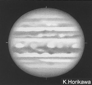 ![]() No.26 1998/08/01 15h32m(UT) I=284.1 II=251.6 Seeing:5-7/10 Transp.:2-3/5 x200 |