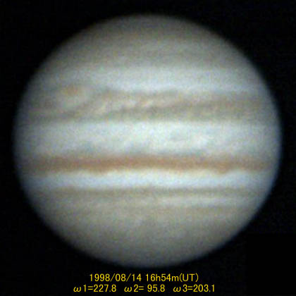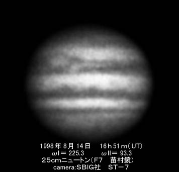 ![]() No.62 1998/08/14 15:46(UT) I=186.6 II= 54.9 Seeing:6/10 Transp.:3/5 x390 |