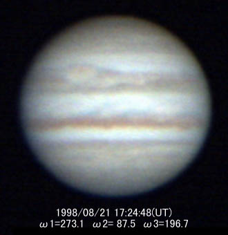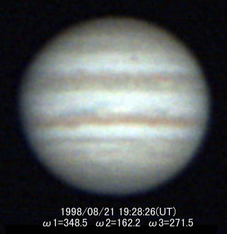 ![]() No.44 1998/08/21 15h34m(UT) ω1=205.6 ω2= 20.6 Seeing:7/10 Transp.:2/5 x200 |