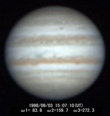 ![]() No.71 1998/09/03 14:36(UT) I= 64.8 II=140.8 Seeing:7/10 Transp.:5/5 x390 |