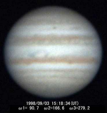 ![]() No.45 1998/09/03 14:18(UT) I= 53.5 II=129.8 Seeing:2-3/10 Transp.:4/5 LV15mm |
