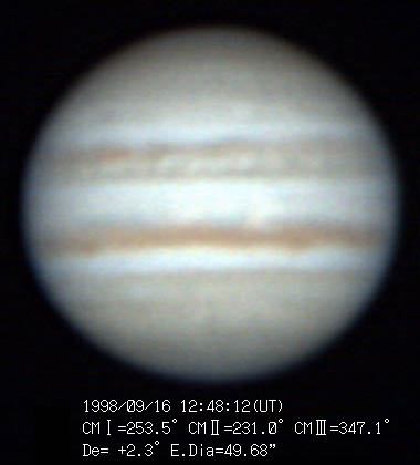 ![]() No.62 1998/09/16 15h47m(UT) ω1= 2.5 ω2=339.0 Seeing:4/10 Transp.:5/5 x200 |