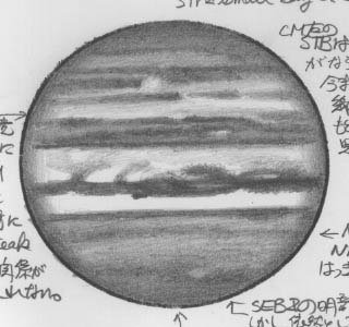 ![]() No.86 1998/10/01 10:50(UT) I= 31.6 II=255.2 Seeing:4/10 Transp.:4/5 x390 |