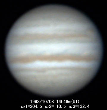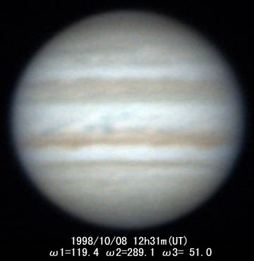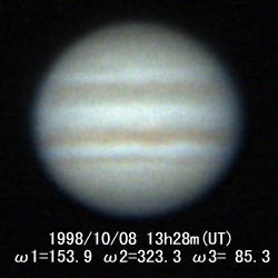 ![]() No.92 1998/10/08 11:20(UT) I= 75.8 II=245.9 Seeing:1/10 Transp.:5/5 x390 |
