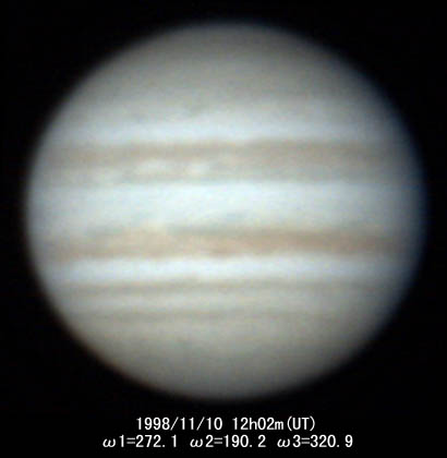 No.101 1998/11/10 12:01:16(UT) I=272.1 II=190.2 III=320.9 De= +2.0゜E.Dia=44.87" 31cm F5 ニュートン テレビュー5Xバーローレンズ 1゜プリズム 合成 F39 NEC PICONA 1/7秒 3枚コンポジット