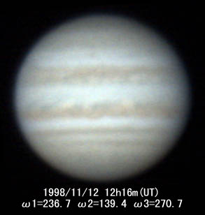 ![]() No.106 1998/11/12 08h56m(UT) I=114.3 II= 18.3 Seeing:2/10 Transp.:5/5 x390 |