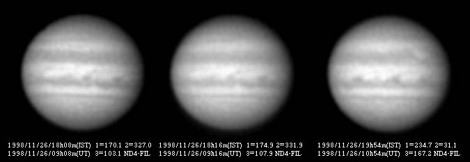 ![]() Image#92 1998/11/26 09:08(UT) I=170.1 II=327.0 Image#93 1998/11/26 09:16(UT) I=174.9 II=331.9 Image#94 1998/11/26 10:54(UT) I=234.7 II= 31.1 | |