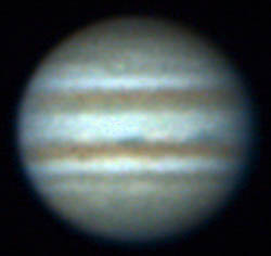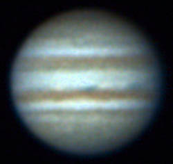 ![]() No.112 1998/12/12 10:10:10(UT) I=213.3 II=247.9 III= 27.1 De= +1.9゜E.Dia=40.43" 31cm F5 ニュートン テレビュー5Xバーローレンズ 1゜プリズム 合成 F39 NEC PICONA 1/7秒 3枚コンポジット |