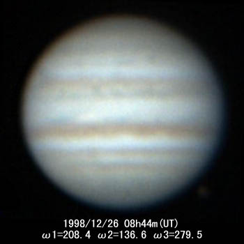 ![]() No.110 1998/12/26 08h51m(UT) ω1=212.4 ω2=140.6 Seeing:5/10 Transp.:4/5 x200 |