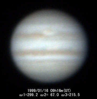 ![]() No.153 1999/01/16 09h28m (UT) ω1=306.2 ω2= 74.0 Seeing:3(4)/10 Transp.3/5 ×390 |