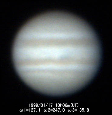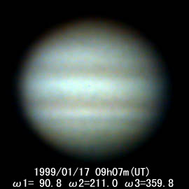 ![]() No.114 1999/01/17 09h06m(UT) ω1= 90.5 ω2=210.7 Seeing:4-5/10 Transp.:3/5 x200 |