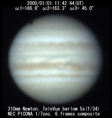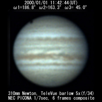 ![]() No.209 2000/01/01 11:42:44(UT) I=186.8 II=163.3 III= 45.0 De=+3.1 Dia=42.61" |