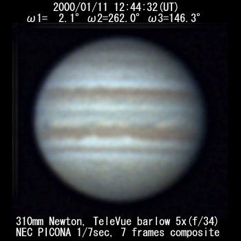 310mm Newton(F5) TeleVue barlow 5x (f/34) 1 deg. prism NEC PICONA 1/7sec 7 frames composite